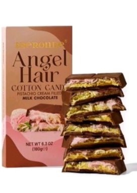 “Saya melihat cokelat Dubai sebagai kasus uji. Angel Hair Chocolate (cangkang cokelat raspberry yang diisi dengan permen kapas dan krim pistachio) sudah ada di pasaran dengan lebih banyak variasi yang pasti akan datang,” katanya.