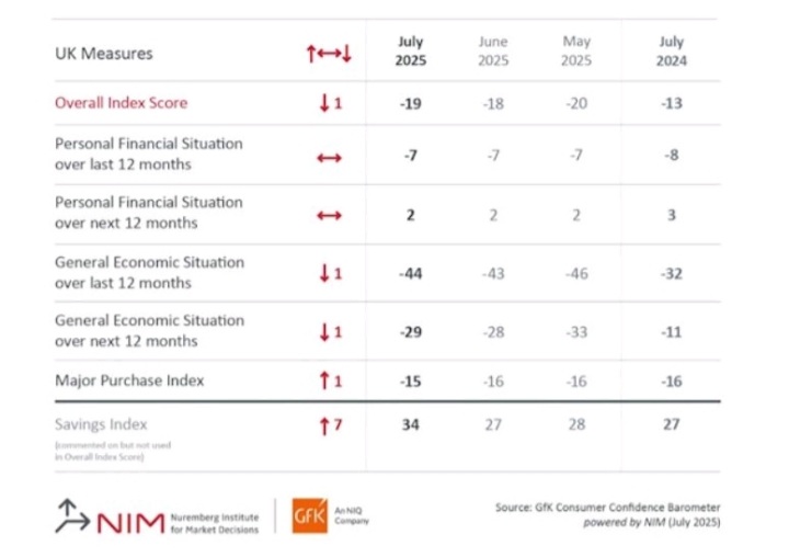 Data GfK Costumer Convidence Barometer mengkonfirmasi kepercayaan konsumen yang lemah. Indeks turun satu poin menjadi -19 pada bulan Juli, dengan dua ukuran turun, satu naik, dan dua tidak berubah dibandingkan dengan pengumuman bulan lalu.
