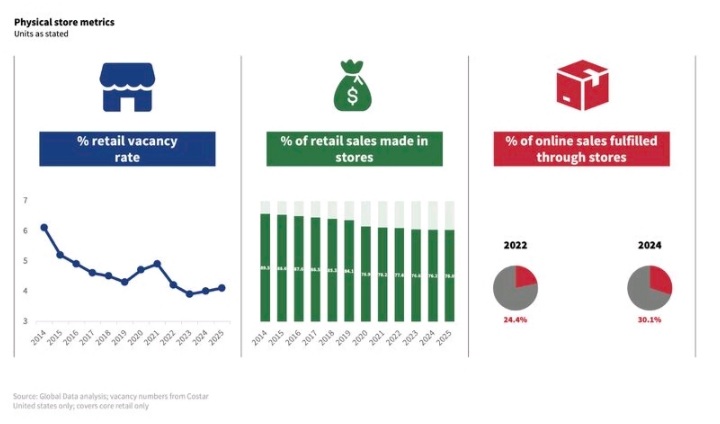 Neil menjelaskan, selain penutupan, metrik lain terlihat solid. Tingkat kekosongan ritel rendah, sekitar 4,2%. Tahun ini, 76% penjualan ritel inti masih akan dilakukan di toko fisik. Dan toko fisik akan mendukung dalam pemenuhan lebih dari 30% dari semua penjualan online.